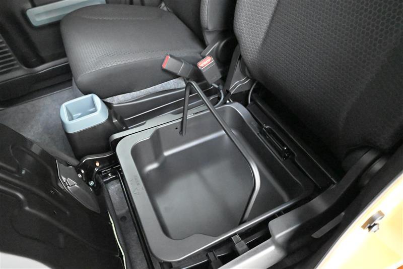 ■助手席シートアンダーボックス 装備。  シートクッションを上げると、取っ手付きで持ち運びができる収納ボックスがあります。