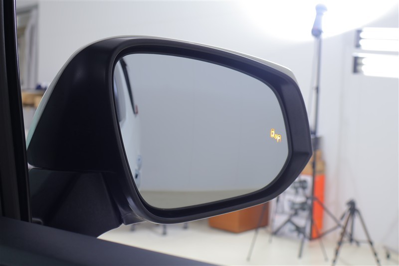 車線変更時などに、ドアミラーでは確認しにくい後側方エリア(ブラインドスポット)に存在する車両をレーダーで検知。警告サインをドアミラー等に表示することで、運転者に注意喚起する機能。