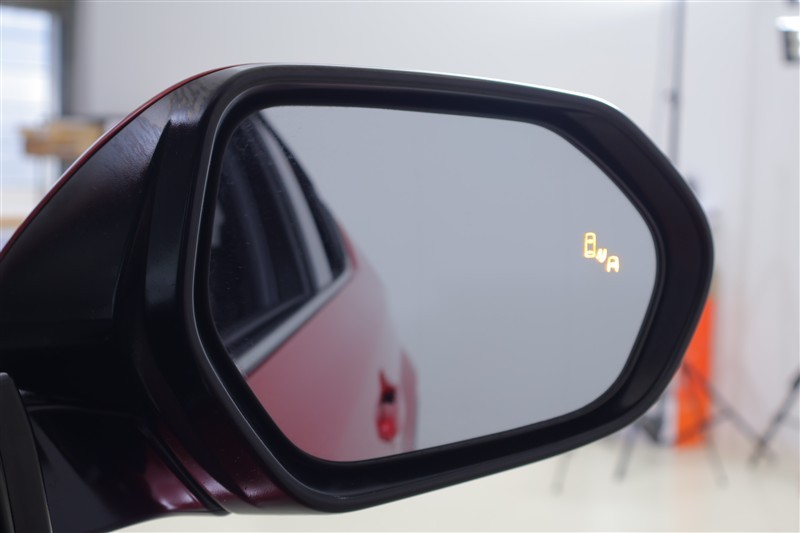 車線変更時などに、ドアミラーでは確認しにくい後側方エリア(ブラインドスポット)に存在する車両をレーダーで検知。警告サインをドアミラー等に表示することで、運転者に注意喚起する機能。