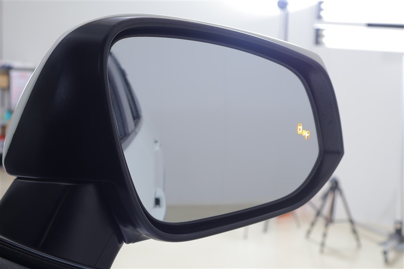 車線変更時などに、ドアミラーでは確認しにくい後側方エリア(ブラインドスポット)に存在する車両をレーダーで検知。警告サインをドアミラー等に表示することで、運転者に注意喚起する機能。