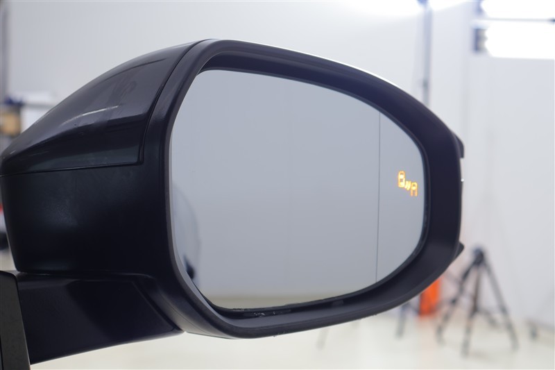 車線変更時などに、ドアミラーでは確認しにくい後側方エリア(ブラインドスポット)に存在する車両をレーダーで検知。警告サインをドアミラー等に表示することで、運転者に注意喚起する機能。