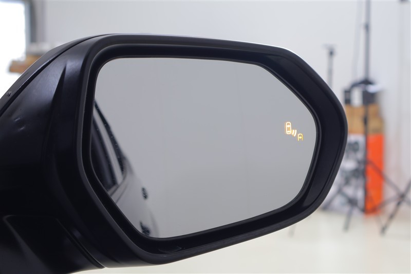車線変更時などに、ドアミラーでは確認しにくい後側方エリア(ブラインドスポット)に存在する車両をレーダーで検知。警告サインをドアミラー等に表示することで、運転者に注意喚起する機能。