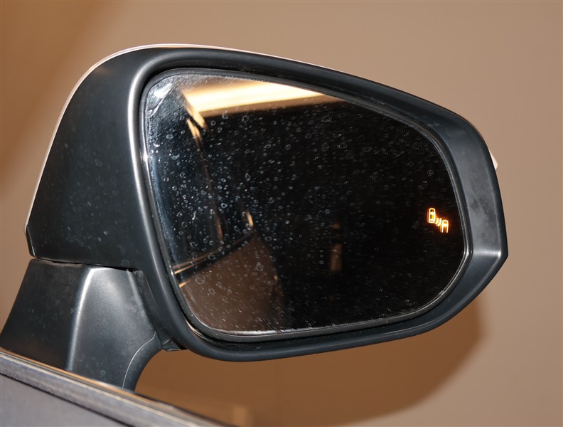 車線変更時などに、ドアミラーでは確認しにくい後側方エリア(ブラインドスポット)に存在する車両をレーダーで検知。警告サインをドアミラー等に表示することで、運転者に注意喚起する機能。