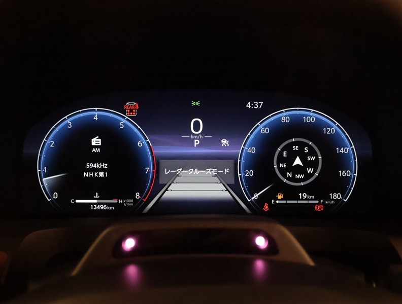とっても見やすいメーターです。夜間時はラグジュアリーな気分にさせてくれる照明が魅力ですので、夜のドライブも楽しみになりますよ♪