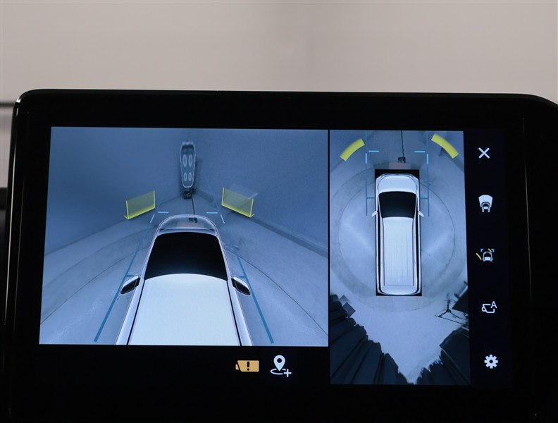 複数のカメラの映像を合成して、クルマの真上から見ているような映像をドライバーに提供する機能。