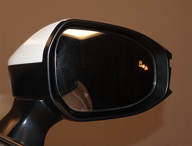 車線変更時などに、ドアミラーでは確認しにくい後側方エリア(ブラインドスポット)に存在する車両をレーダーで検知。警告サインをドアミラー等に表示することで、運転者に注意喚起する機能。