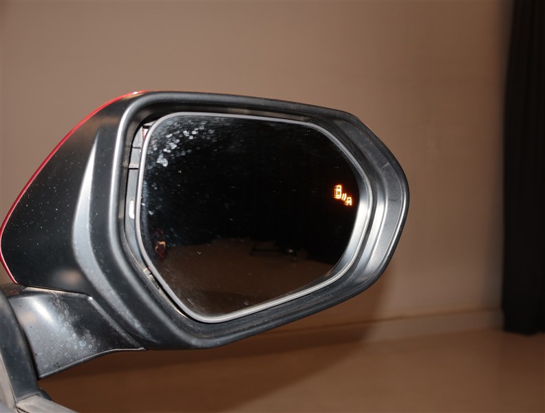 車線変更時などに、ドアミラーでは確認しにくい後側方エリア(ブラインドスポット)に存在する車両をレーダーで検知。警告サインをドアミラー等に表示することで、運転者に注意喚起する機能。