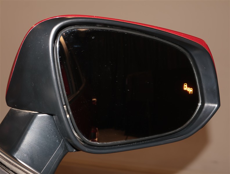 車線変更時などに、ドアミラーでは確認しにくい後側方エリア(ブラインドスポット)に存在する車両をレーダーで検知。警告サインをドアミラー等に表示することで、運転者に注意喚起する機能。