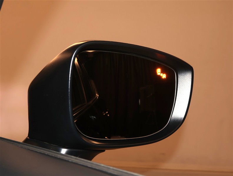 車線変更時などに、ドアミラーでは確認しにくい後側方エリア(ブラインドスポット)に存在する車両をレーダーで検知。警告サインをドアミラー等に表示することで、運転者に注意喚起する機能。