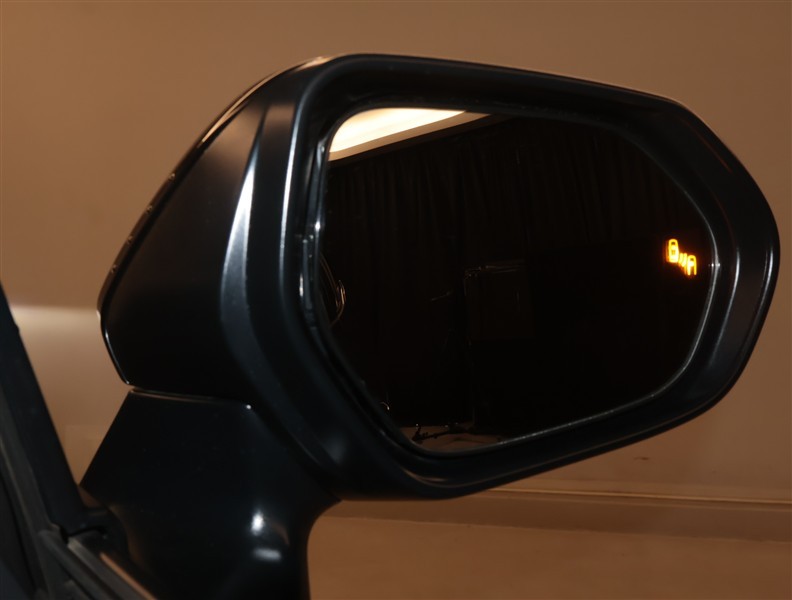 車線変更時などに、ドアミラーでは確認しにくい後側方エリア(ブラインドスポット)に存在する車両をレーダーで検知。警告サインをドアミラー等に表示することで、運転者に注意喚起する機能。