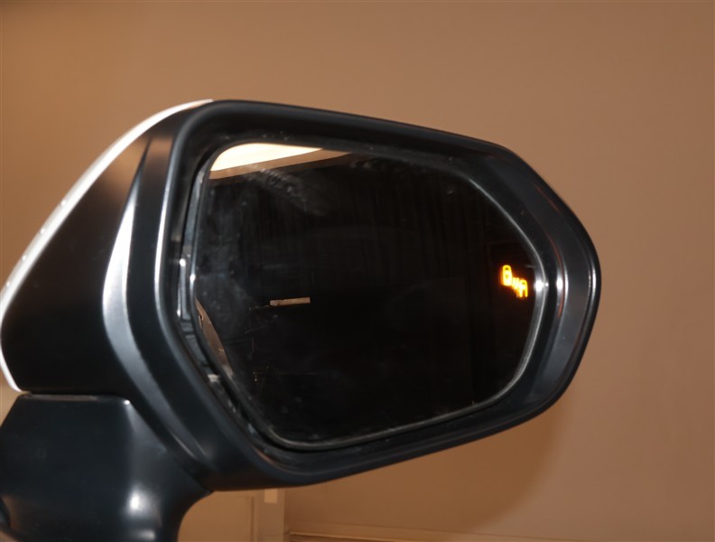 車線変更時などに、ドアミラーでは確認しにくい後側方エリア(ブラインドスポット)に存在する車両をレーダーで検知。警告サインをドアミラー等に表示することで、運転者に注意喚起する機能。