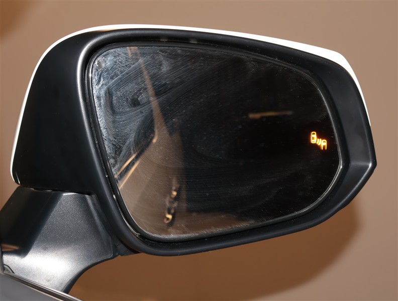 車線変更時などに、ドアミラーでは確認しにくい後側方エリア(ブラインドスポット)に存在する車両をレーダーで検知。警告サインをドアミラー等に表示することで、運転者に注意喚起する機能。