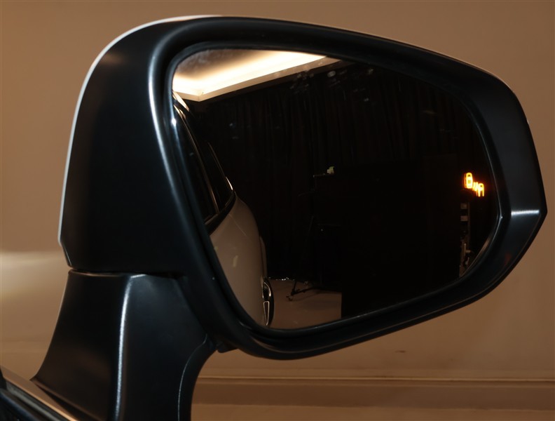 車線変更時などに、ドアミラーでは確認しにくい後側方エリア(ブラインドスポット)に存在する車両をレーダーで検知。警告サインをドアミラー等に表示することで、運転者に注意喚起する機能。