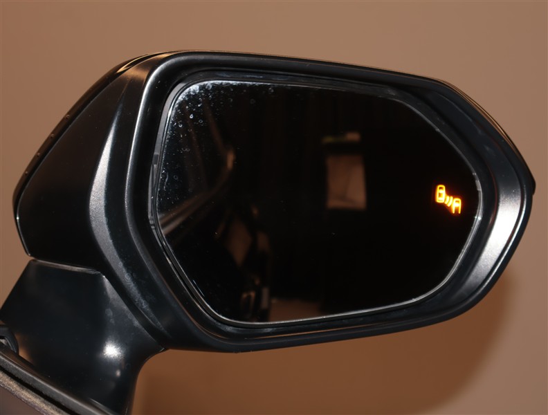 車線変更時などに、ドアミラーでは確認しにくい後側方エリア(ブラインドスポット)に存在する車両をレーダーで検知。警告サインをドアミラー等に表示することで、運転者に注意喚起する機能。