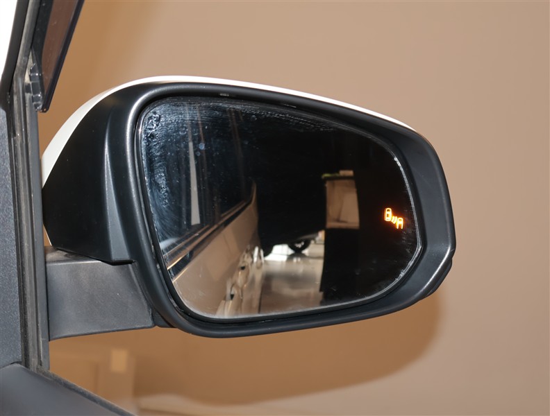 車線変更時などに、ドアミラーでは確認しにくい後側方エリア(ブラインドスポット)に存在する車両をレーダーで検知。警告サインをドアミラー等に表示することで、運転者に注意喚起する機能。