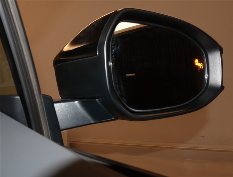 車線変更時などに、ドアミラーでは確認しにくい後側方エリア(ブラインドスポット)に存在する車両をレーダーで検知。警告サインをドアミラー等に表示することで、運転者に注意喚起する機能。