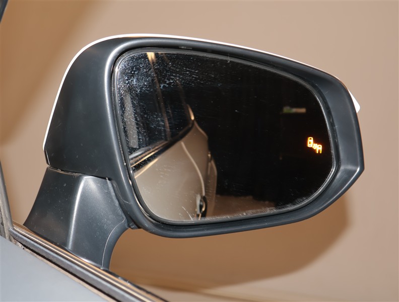 車線変更時などに、ドアミラーでは確認しにくい後側方エリア(ブラインドスポット)に存在する車両をレーダーで検知。警告サインをドアミラー等に表示することで、運転者に注意喚起する機能。
