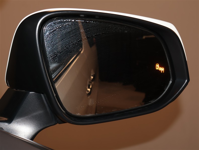車線変更時などに、ドアミラーでは確認しにくい後側方エリア(ブラインドスポット)に存在する車両をレーダーで検知。警告サインをドアミラー等に表示することで、運転者に注意喚起する機能。