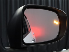 車線変更時などに、ドアミラーでは確認しにくい後側方エリア(ブラインドスポット)に存在する車両をレーダーで検知。警告サインをドアミラー等に表示することで、運転者に注意喚起する機能。