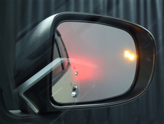 車線変更時などに、ドアミラーでは確認しにくい後側方エリア(ブラインドスポット)に存在する車両をレーダーで検知。警告サインをドアミラー等に表示することで、運転者に注意喚起する機能。