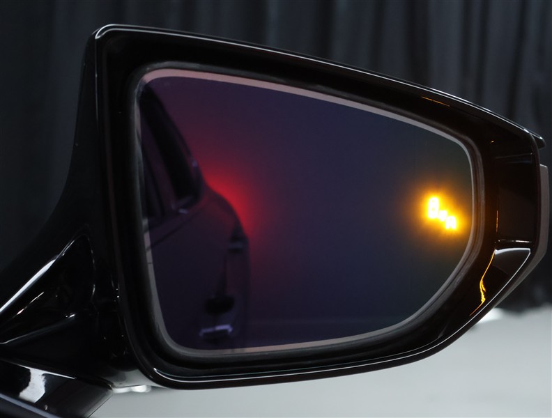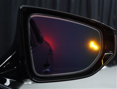 車線変更時などに、ドアミラーでは確認しにくい後側方エリア(ブラインドスポット)に存在する車両をレーダーで検知。警告サインをドアミラー等に表示することで、運転者に注意喚起する機能。