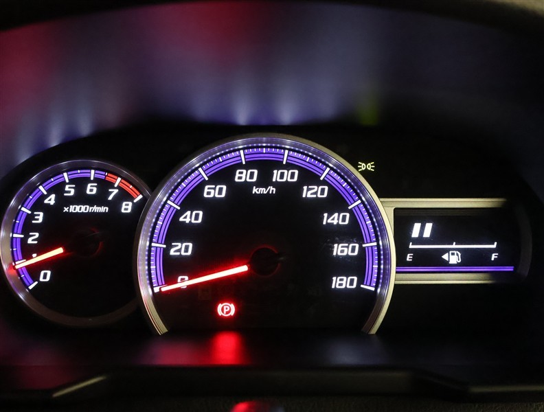 とっても見やすいメーターです。夜間時はラグジュアリーな気分にさせてくれる照明が魅力ですので、夜のドライブも楽しみになりますよ♪