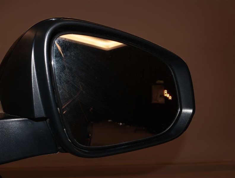 車線変更時などに、ドアミラーでは確認しにくい後側方エリア(ブラインドスポット)に存在する車両をレーダーで検知。警告サインをドアミラー等に表示することで、運転者に注意喚起する機能。