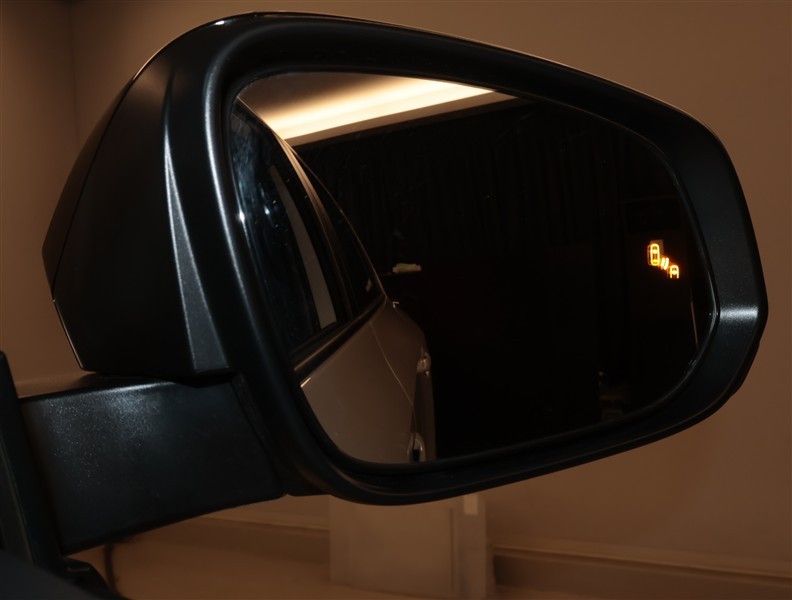 車線変更時などに、ドアミラーでは確認しにくい後側方エリア(ブラインドスポット)に存在する車両をレーダーで検知。警告サインをドアミラー等に表示することで、運転者に注意喚起する機能。
