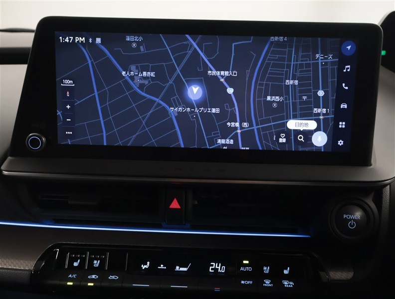 スタイリッシュなデザインのインパネ。各操作スイッチは使いやすい位置に配置されてます。