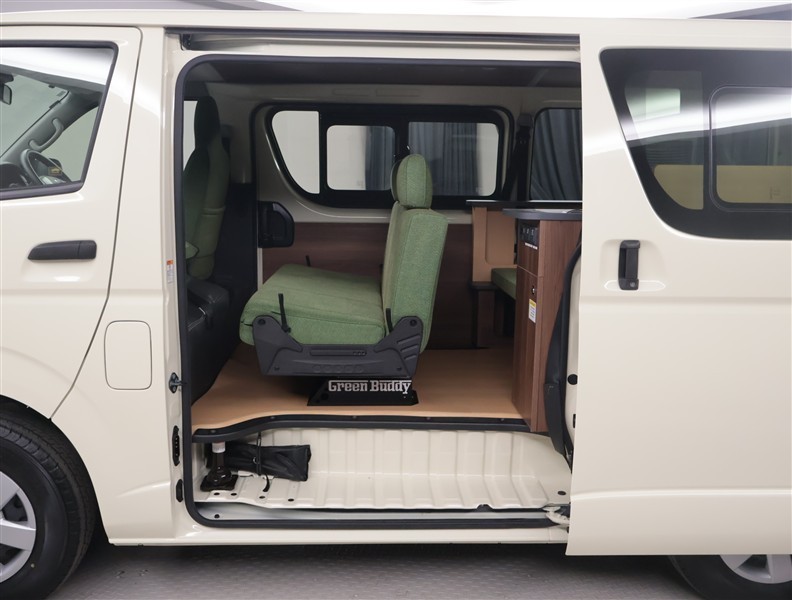 車両コンセプト説明:「Green Buddy」は埼玉トヨペットがハイエースをベースにトイファクトリーと一緒にコラボレーションして誕生したキャンピングカーです!