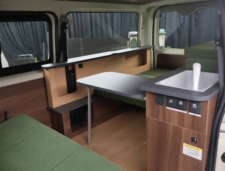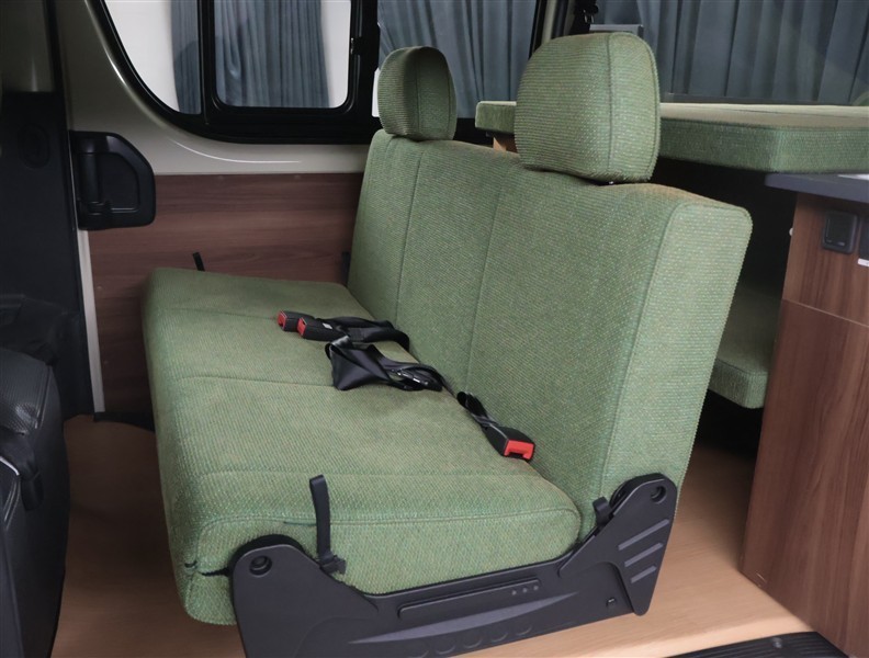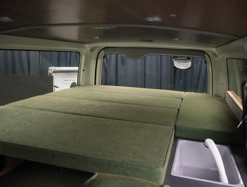 車両仕様:「A-TYPE」標準装備・2列目キャンピング専用シート・2列目シートリマインダー(ディーゼル車のみ)・ベットマット自動車難燃式ファブリック・リヤサイドキャビネット左右ハイタイプ格納有・オリジ