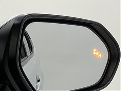 車線変更時などに、ドアミラーでは確認しにくい後側方エリア(ブラインドスポット)に存在する車両をレーダーで検知。警告サインをドアミラー等に表示することで、運転者に注意喚起する機能。