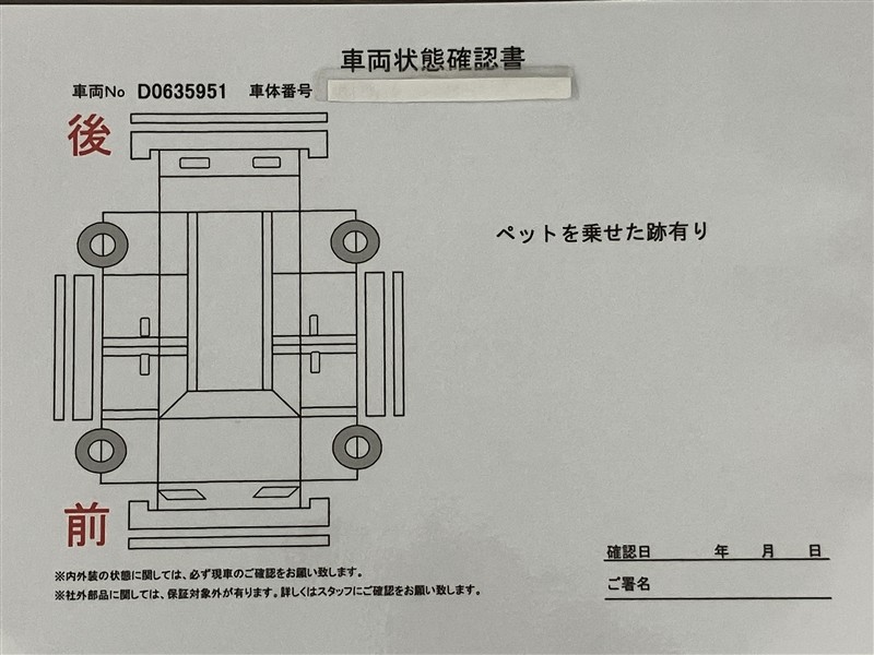 • 諸費用10.7万円(保険料・税金・自動車リサイクル料金・その他登録に伴う費用)を登録時までに現金で別途申し受けます。