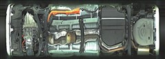 複数のカメラの映像を合成して、クルマの真上から見ているような映像をドライバーに提供する機能。