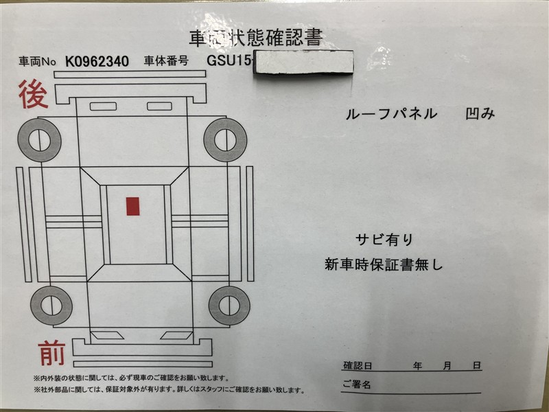 • 諸費用15.3万円(保険料・税金・自動車リサイクル料金・その他登録に伴う費用)を登録時までに現金で別途申し受けます。