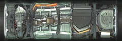 複数のカメラの映像を合成して、クルマの真上から見ているような映像をドライバーに提供する機能。