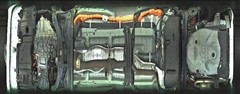複数のカメラの映像を合成して、クルマの真上から見ているような映像をドライバーに提供する機能。