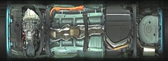 複数のカメラの映像を合成して、クルマの真上から見ているような映像をドライバーに提供する機能。