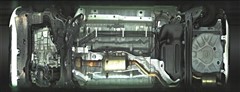複数のカメラの映像を合成して、クルマの真上から見ているような映像をドライバーに提供する機能。