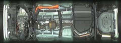 複数のカメラの映像を合成して、クルマの真上から見ているような映像をドライバーに提供する機能。