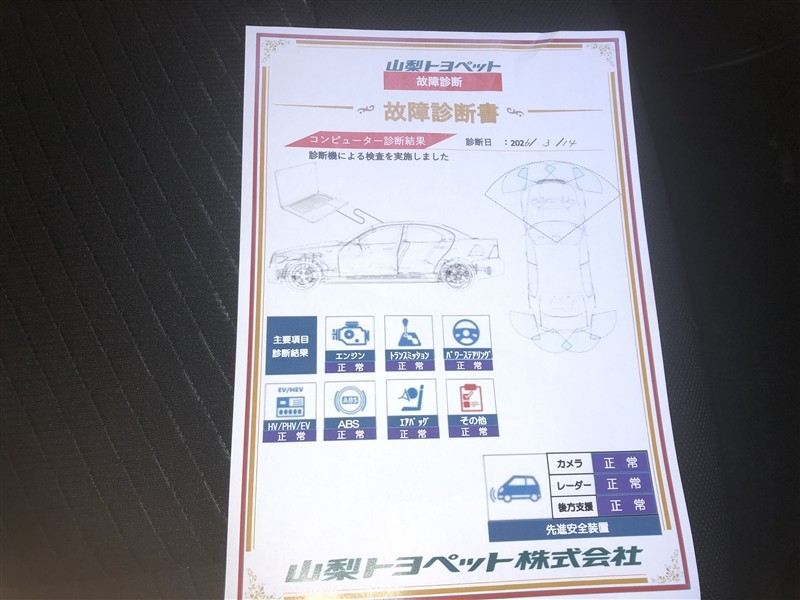 ※ 「定期点検整備なし(要整備箇所あり)」の場合、整備箇所につきましては、販売店へお問い合わせください。