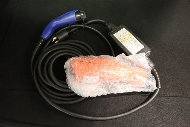 充電用ケーブルです。クルマとコンセントをつなぐだけで簡単に充電が可能。また、普通充電インレットにヴィークルパワーコネクターを差し込めば、外部給電も可能です。
