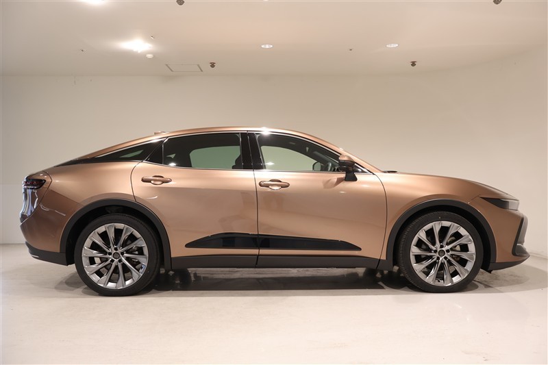 流麗なクーペフォルムが生み出す新時代の洗練されたスタイリングです。流れるようなボディライン魅力的のサイドフォルムです、乗降しやすそうなのがわかります。