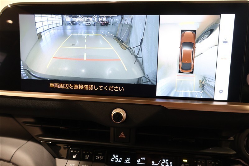 車両を真上から見たような映像をディスプレイオーディオ画面に表示、運転席からの目線だけでは見えにくい車両周辺の状況をリアルタイムでしっかり確認出来ます。