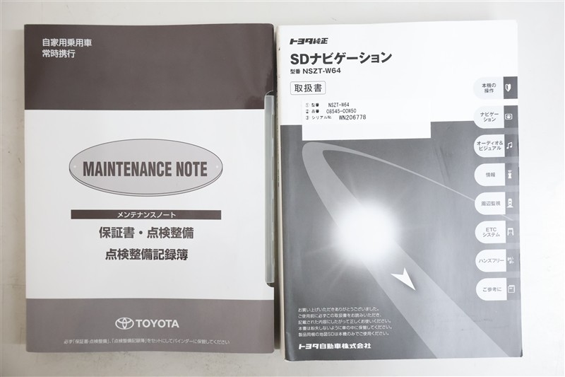 トヨタ純正SDナビゲーションシステム取扱書 NSZT-W64 ■メンテナンスノート■これまでの点検整備状況が確認できて安心です。