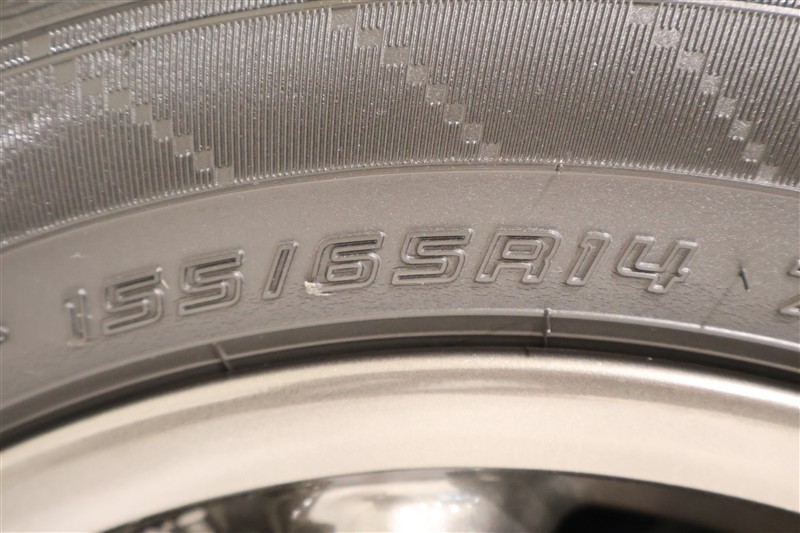 155/65R14  装着タイヤサイズです。 夏タイヤのご相談もスタッドレスタイヤの事も、石川トヨペットカローラにご相談くださいませ