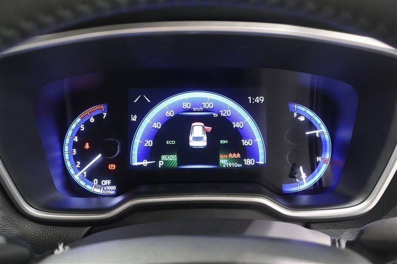 スマートキーを携帯し、パーキングブレーキがかかっている状態を確認をし、ブレーキペダルもしっかり踏込みながらパワースイッチを押すとREADYインジケーターが点灯しハイブリッドシステムの始動となります。