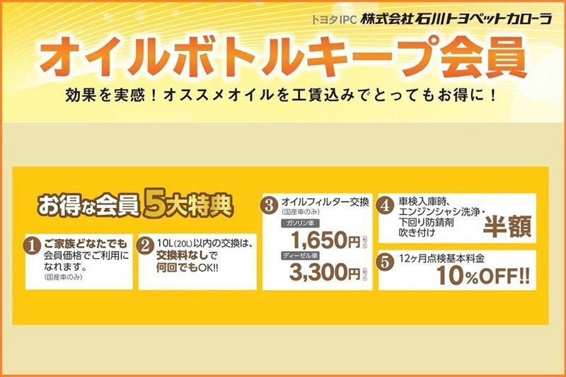 おすすめです!オイルボトルキープ会員!