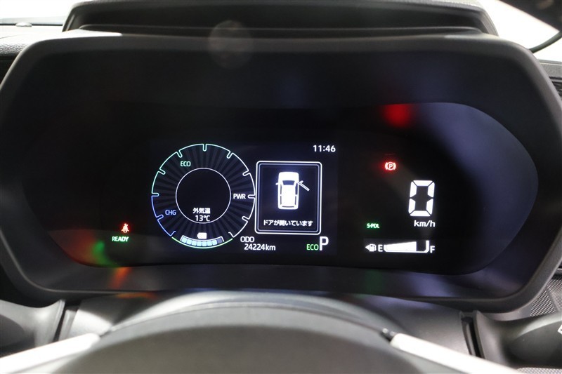 スマートキーを携帯し、パーキングブレーキがかかっている状態を確認をし、ブレーキペダルもしっかり踏込みながらパワースイッチを押すとREADYインジケーターが点灯しハイブリッドシステムの始動となります。