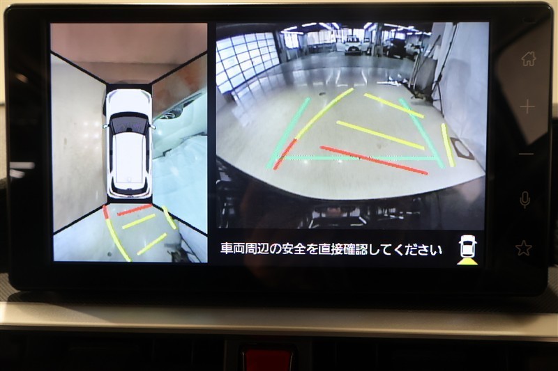 パノラミックビューモニター付きです。車両を上から見たような映像をディスプレイオーディオ画面に表示。運転席からの目視だけでは見にくい、車両周辺の状況をリアルタイムでしっかり確認できます。